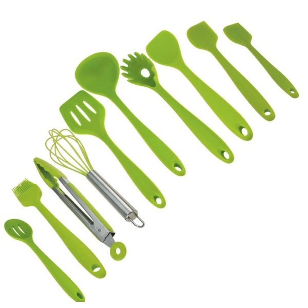 10pcs Silicone Utensils Set, Heat-Resistant, Non-Stick (Green)